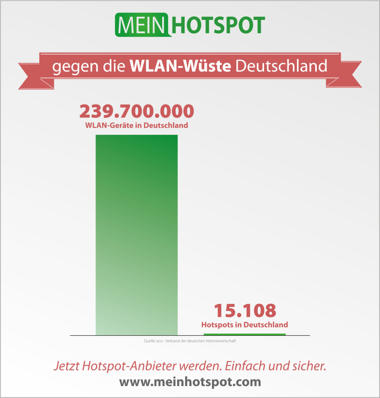 Deutschland gilt europaweit als WLAN-Wüste. Die Haftungsrisiken schrecken viele potentielle Betreiber ab. Dabei ist der Bedarf durchaus vorhanden. Laut einer Studie des Hardware-Herstellers Lancom nutzen 90% der Befragten WLAN-Hotspots, wenn diese verfügbar sind. Das ist eine beachtliche Zahl – vor allem wenn man das derzeit noch geringe Angebot an freien WLAN-Hotspots dagegen hält.